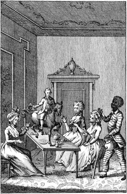 Een van zijne voorvaderen was geboortig van Bern in Zwitzerland, en een waterdrager te Parijs. Deze man maakte op eene zeer toevallige en koddige wijze kennis met de schoonheid, welke hij om eene zeer zonderlinge rede trouwde, en waarmede hij maar éénen dag in het huwelijk leefde. Deze vrouw was geboren in het gebergte van Savoie, en had, volgends den aard van dat land, op beide Sexen zoo grillig werkende, een zeer fraaijen groten wen in haren nek. Zij verliet het huis haarer ouderen, nog zeer jong zijnde. Te Parijs, werwaards zij gegaan was, om haar fortuin te zoeken, leefde zij eenigen tijd van de giften, welken eenige jonge Heeren aan haar uit liefde besteedden. Op zekeren nacht ontmoeteden deze twee vremdelingen elkander op straat, en kwamen in één punt samen; (zij hadden beiden een weinig te veel gedronken; ook brandden toen in Parijs des avonds nog geen lantaernen; waardoor men elkander in den donker minder ontwijken konde); in dezen stand werden zij door de ronde gevat, naa de wacht, en 's anderen daags na 't spinhuis gebragt. Beiden verdroot dit opgeslooten en eenvormig leven; beiden dachten op hun ontslag; beiden bedachten hetzelfde middel, en beiden gaven het op denzelfden tijd aan hunne bewaarders te kennen; beiden ontschuldigden hun gedrag door hunne jeugd; beiden zochten het goed te maaken door te zeggen, dat zij aan elkander verloofd waren, en den volgenden dag met elkander in den echt zouden getreeden zijn. Beiden kwamen alzoo volmaakt met elkander overeen; beiden werden zij ontslagen, en door den aartsbisschop van Parijs door den band des huwelijks vereenigd. Maar de jong getrouwde vrouw, die waande van adelijke herkomste te zijn, wilde nooit met een zwitzerschen burger te doen hebben: welke, op zijne beurt, begrijpende, dat hij overal te regt konde raaken, zijne preutsche verliet, met welke hij alleen getrouwd was, om zijne vrijheid weder te krijgen! Deze kiesche vrouw verbond zig kort daarna met een Koning, (wel te verstaan van een poppenspel) reisde met hem op alle kermissen, en kwam eindelijk te Rome. Hier viel zij in de ongenade van haren Vorst, werd uit zijn gebied gebannen en huurde een Oesterkelder digt bij het Vaticaan.—CÆSAR BORGIA, die veel van Oesters hield, kwam haar dikwijls bezoeken, en bleef wel eens een nachtje over. In één van dezelven ontving de bet-out-over-grootvader van onzen held het eerste bestaan, wiens moeder den volgenden morgen, voor het aanbreken van den dag, Rome verliet.