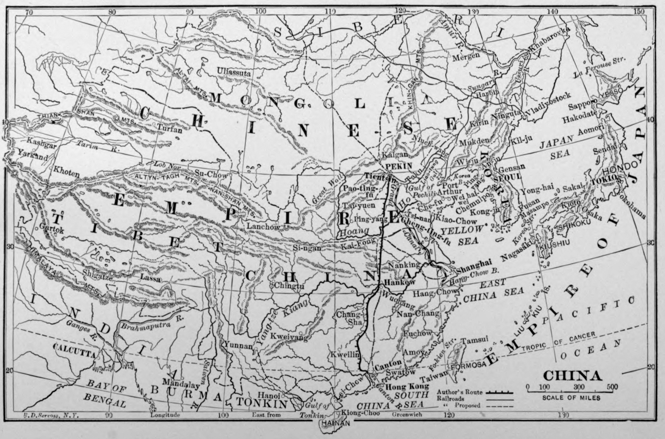 While travelling in China, and trying to gain the Chinese point of view, I met so many charming people, so many men of intelligence and liberal education, honorable, broad-minded, and devoted to the uplifting of their unhappy country, that I became exceedingly interested in their cause, and anxious to aid it. With this object in view I am striving, through the medium of a story, to present it to those young Americans who, in the near future, will be called upon to decide the ultimate fate of the great Middle Kingdom. With them, more than with any other people, even including the Chinese themselves, will rest the decision, whether China shall remain a nation, open to the unobstructed commerce of the world, or become a series of petty colonial possessions devoted only to the interests of their several ruling powers. That my young readers may be guided to a wise and just solution of this great problem, is the sincere hope of their friend,