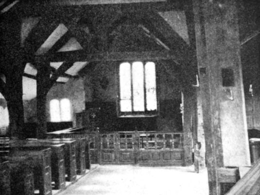 [2] Sometimes the roof was held up by a single 'king-post' in place of two queen-posts. The 'king-post' reached from the centre of the tie-beam to the point of the roof.