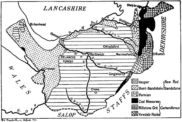 Nearly every Cheshire boy has visited at some time or another a quarry in the neighbourhood of the town or village where he dwells. He will probably have noticed that beneath the two or three feet of soil at the top of the quarry the rocks are arranged in beds or 'strata' piled one upon another in horizontal rows, or sometimes sloping in parallel lines towards the bottom of the quarry. When and how were these beds of rock formed and laid down?