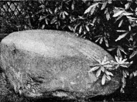 When, in the course of time, the red sandstone formed the dry land of Cheshire, it became covered by a great ice-sheet which extended over Britain even as far south as the Thames valley. Beneath this covering of ice the20 rocks were crushed and ground to atoms by the movement of the ice-sheet over them. This formed beds of a substance called boulder-clay, containing lumps of rock which must have been brought by the ice great distances, for they are of a kind found only in the north of England or in Scotland. Some of these 'boulders' are of great size. Several have been placed in Vernon Park, Stockport, and in the West Park, Macclesfield, you may see one that was dug up in the neighbourhood of the town. It weighs about thirty tons. On Eddisbury Hill is a mass of rock, ten feet long, of a kind found only on Skiddaw in the Lake District, and in the narrow lane behind the 'Wizard' Inn on Alderley Edge is a lump of granite from Eskdale, so that these rocks have been brought by the ice a distance of a hundred miles. Such blocks and boulders are called 'erratics', because they have wandered so far from their original home. Another proof of the existence of the ice-sheet may be seen in the scratchings and marks (called 'striae') on pebbles and rocks found in these beds. In the lane outside the church at High Legh are a number of large boulders which still show the lines of furrows and scratchings made on their surface by the movement of the ice over them.