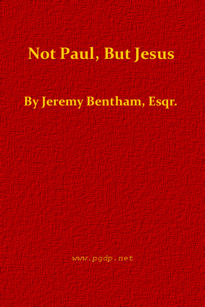 One step further was still wanting. One thorn still remained, to be plucked out of the side of this so much injured religion,—and that was, the addition made to it by Saul of Tarsus: by that Saul, who, under the name of Paul, has,—as will be seen, without warrant from, and even in the teeth of, the history of Jesus, as delivered by his companions and biographers the four evangelists,—been dignified with the title of his apostle: his apostle, that is to[Pg xiii] say, his emissary: his emissary, that is to say, sent out by him: sent out, by that Jesus, whose immediate disciples he so long persecuted and destroyed, and whose person,—unless dreaming of a person after his death, or professing to have dreamt of him, is seeing him,—he never saw.