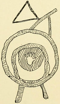 | The Basket Maker. Old woman of the Kaibab Pai Utes. Behind is the typical Pai Ute dwelling of boughs and brush. The dwellings of the Shewits are similar. Photograph by J.K. HILLERS, U.S. Colo. Riv. Exp. |