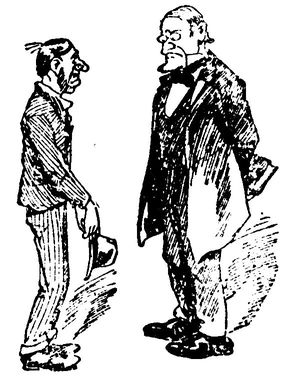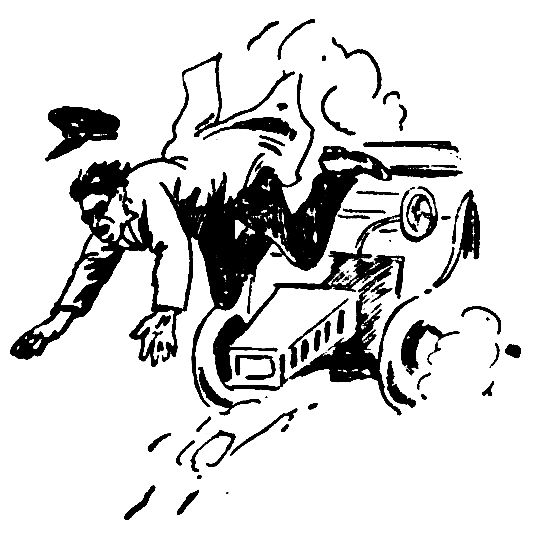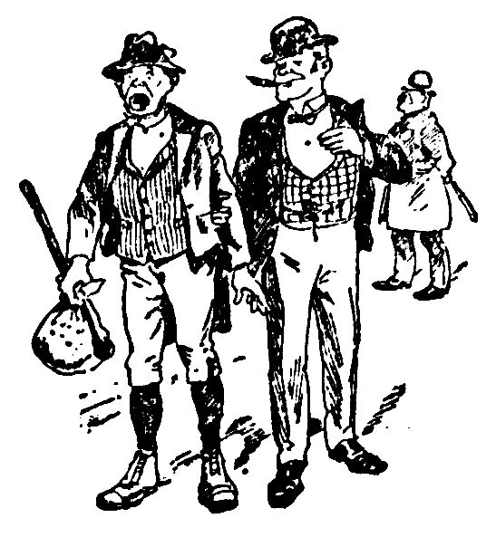 "Look here, young feller," says the visitor, "I'm Cornelius Vanderbilt out for a spin in my new automobile, and I won't be disturbed by the likes of you."