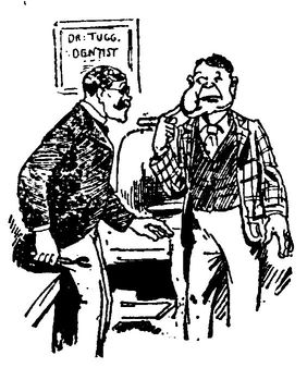 The dentist, thinking that I was about to pay him, says: