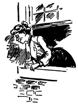 "I was out and she was all alone in the house. Suddenly she heard muffled footsteps on the porch. They came nearer and finally sounded in the dining-room.