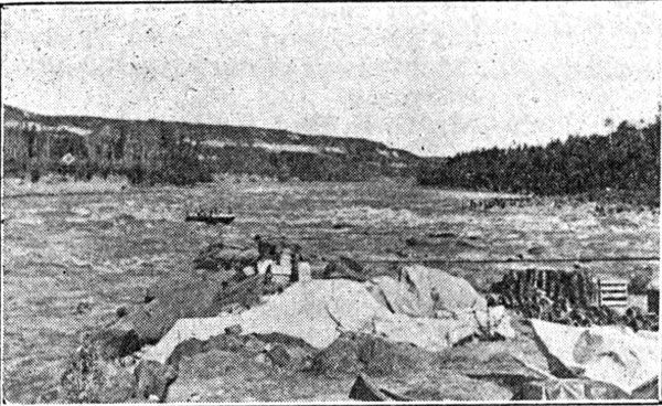 FitzGerald, originally known as Smith's Landing, is at the end of the Athabasca River navigation, approximately three hundred miles below McMurray. It is an important point in the transportation system, as cargoes are there discharged and portaged sixteen miles to Fort Smith, where they are loaded into other steamers navigating the Mackenzie River.
