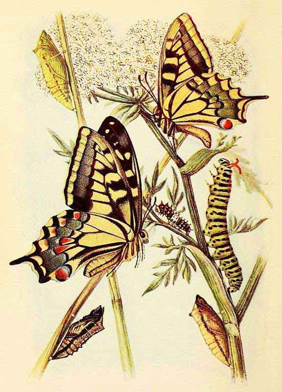 Male and female, with caterpillars and chrysalids.