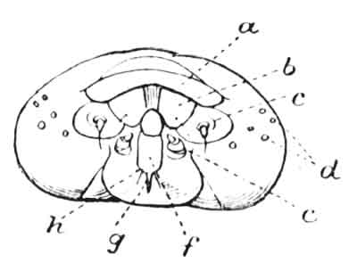 f, labium; g, spinneret; h, labial palp.