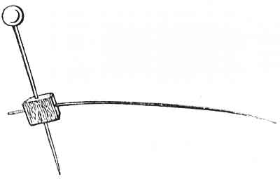 In passing to the chrysalis stage the caterpillars have sometimes to make rather more preparations than in previous skin-changing provisions. Those of the Swallow-tail, Whites, Orange-tip, and similar kinds have to provide a silken girdle for the waist as well as a pad for the tail. Chrysalids that hang suspended, head downwards, such as the Vanessids, Fritillaries, etc., are attached by the cremaster—a hooked arrangement on the tail (Fig. 5)—to a pad of silk; others, such as the Blues and the Coppers, appear to be held in position on a leaf, or some other object, by means of a fine girdle of silk, or sometimes a few silken threads spread net-like above and below them—rudiments of a cocoon in fact. Chrysalids of the Skippers are enclosed in a more or less complete cocoon placed within a chamber, formed of a leaf or leaves of the food-plant, drawn together by silken cables. Some of these [Pg 7]chrysalids are furnished with hooks on the tail as well as with a girdle for suspension; but others have hooks only.