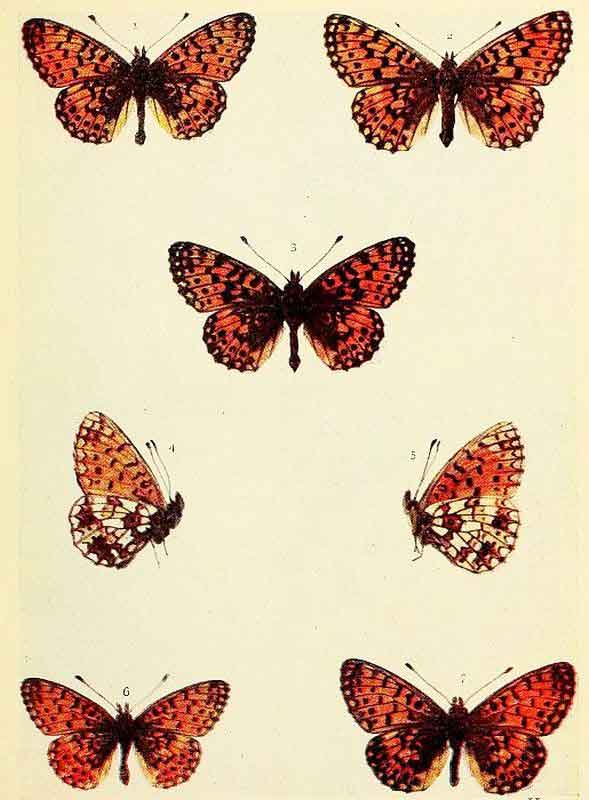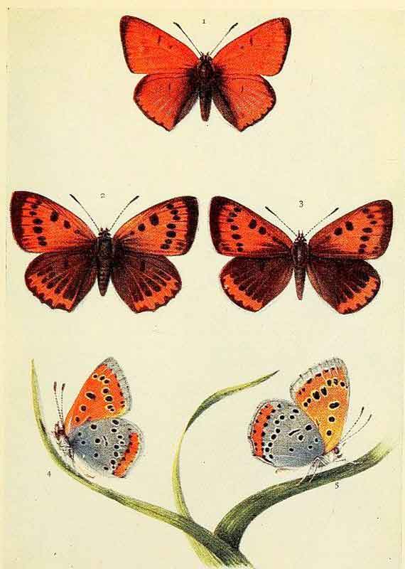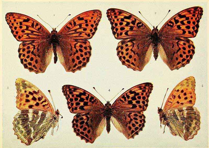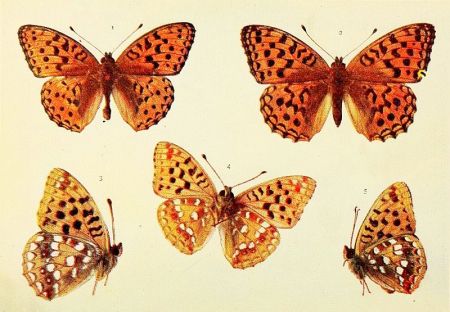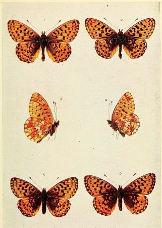 Duke of Burgundy Fritillary. 1, 2, 4 male; 3, 5 female.