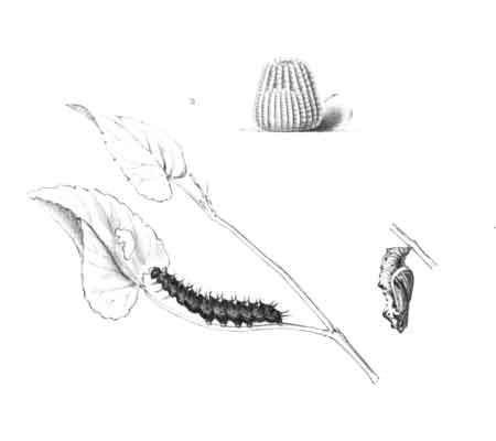 A female butterfly emerged on May 20, the transformation from egg to perfect insect thus occupying about eleven months. This local butterfly is on the wing in June; sometimes it is seen in the latter part of May, and, more rarely perhaps, in July.
