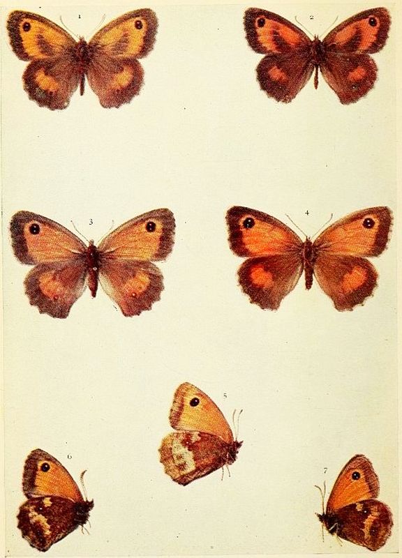 Although it does not seem to be very plentiful in fenlands, this butterfly certainly has a partiality for damp places, whether in the rides, or on the sides of woods, on hill slopes, or waste ground. Wherever there is a fairly large growth of the taller soft grasses that the caterpillars feed upon, there the butterfly may be found in July and August throughout the greater part of England and Wales. Reported from the Edinburgh district in Scotland; and in Ireland from Powerscourt and near Cork.