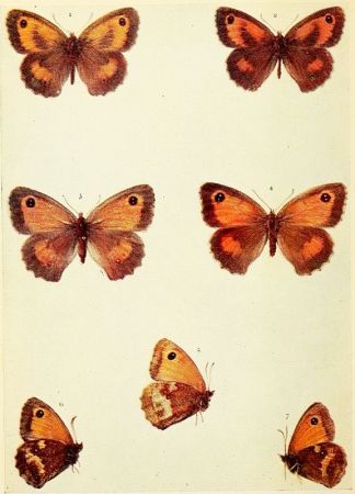 This butterfly has been supposed to be double brooded, but there does not seem to be any direct evidence that this is so. It is on the wing in grassy places on the slopes of downs and other hillsides, also in rides, and on the margins of woods, from early June until well into July, and sometimes even later in the year. It is found in most of our English counties, and also in Scotland, south of the Forth. In Ireland it is not uncommon in a meadow in Lord Kenmare's demesne, Killarney, and has been recorded from the Morrough of Wicklow.