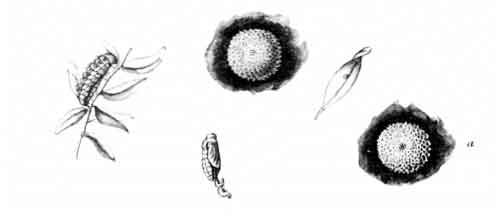 I took one or two specimens about the middle of August, 1903, in the New Forest district, and in the same month of 1905 one of two caterpillars sent to me by Dr. Chapman pupated in August, and the butterfly emerged some time in the autumn, as I found it dead in the box early in October. Both the [Pg 187]caterpillars had spun together sprays of the food-plant as shown in the figure, Plate 123. One was removed for its portrait to be taken, and it was supposed that the other bundle contained a caterpillar also, and was not examined.