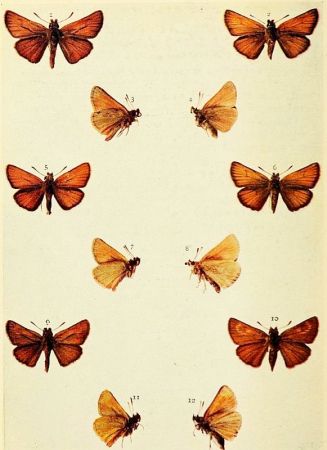 No doubt this butterfly has been with us all the time, but it appears to have escaped detection until the year 1888, when Mr. Hawes, in July of that year, met with it in Essex. He, however, did not then consider the three specimens that he had taken with A. thaumas anything more than queer varieties of that species, and it was not until January, 1890, that the fact of A. lineola being British was published. Since that time this Skipper has been found in a great many parts of Essex, but chiefly along the coast, and in such localities as Benfleet, Canvey, Dovercourt, Shoeburyness, Southend, etc. At Hadleigh it is often very abundant. Other localities are Sheerness, Cliffe, and Gravesend, in Kent. It has also been reported from near Sudbury, and from Harwich, and Chappel [Pg 190]in Suffolk; from Ashton Wold in Northamptonshire. In 1898 five specimens, identified by the Rev. Gilbert Raynor, were taken near Bedford. Barrett, who mentions Wicken Fen and Burwell among other localities, says that it has a "partiality for the embankments which protect the cultivated land from the inroad of the high tides which flood the salt marshes. Here it flits about, or sits on the coarse seaside grasses or on blossoms of thistle, or Lotus corniculatus, indicating rather sluggish habits, yet flying swiftly when disturbed. Further inland it seems to frequent chalky hillsides and marshes." It is on the wing in July and August.