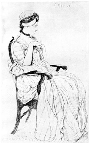 The two artists went by train from Marseilles to Nice and Ventimiglia, and then walked along the superb Cornice road to San Remo, conscious that every step brought them nearer to their beloved Italy. The hills, covered with palms and orange-trees, the sacred-looking groves of gray-green olives detached against the deep blue of the sea, recalled to Saint-Gaudens a story by Anatole France describing some early Christians in an olive grove overlooking the Mediterranean.