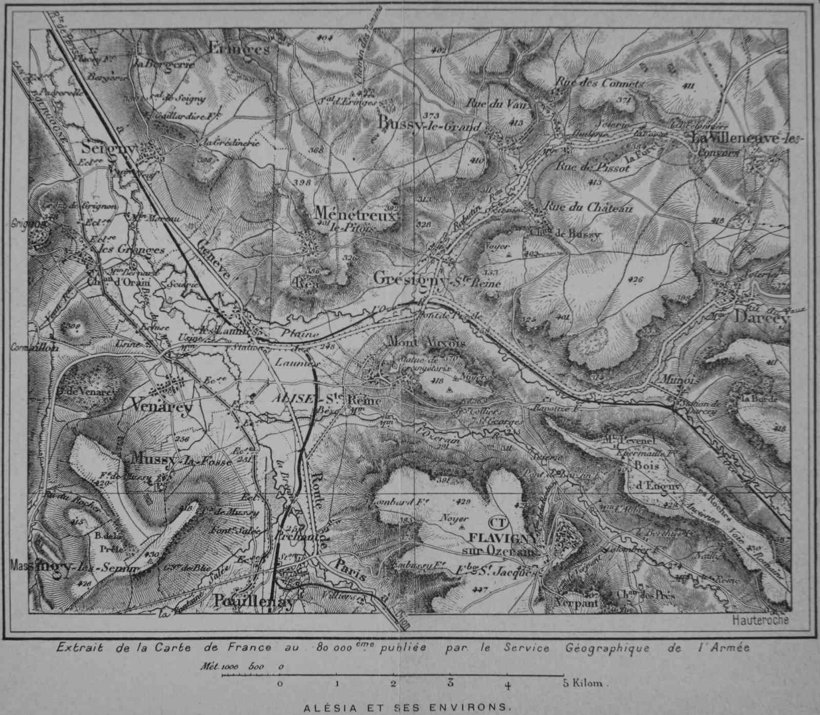 [136] On a une assez bonne vue de ce côté d’Alésia et des Chemins-Croisés chez Napoléon III, atlas de l’Histoire de Jules César, planche 26, no 3.
