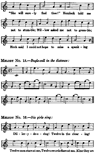Melodies Nos. 1, 2, 3, 4, 5, 6, 7, 8, 9, 10, 12, 13, 14, 16, and 17 have been taken by Strindberg—without any changes—from Richard Dybeck's "Svenska Vallvisor och Hornlåtar" ("Swedish Herd-Songs and Horn-Melodies"), Stockholm, 1846.