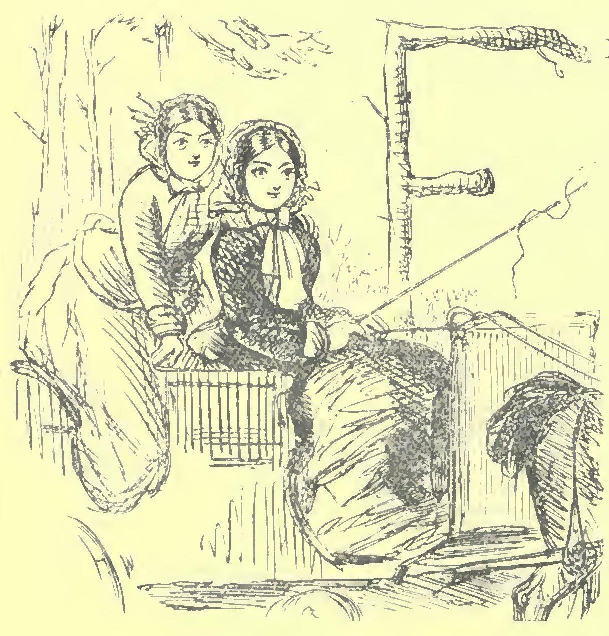 Among the many visited on this auspicious day were our fair friends at Yammerton Grange, our Richest Commoner having infused a considerable degree of activity into the matrimonial market. There is nothing like a little competition for putting young gentlemen on the alert. First to arrive was our friend Sir Moses Mainchance, who dashed up to the door in his gig with the air of a man on safe ground, saluting Mamma whom he found alone in the drawing-room, and then the young ladies as they severally entered in succession. Having thus sealed and delivered himself into the family, as it were, he enlarged on the delights of the ball—the charming scene, the delightful music, the excellent dancing, the sudden disappearance of de Glancey and other the incidents of the evening. These topics being duly discussed, and cake and wine produced, “Mamma” presently withdrew, her example being followed at intervals by Flora and Harriet.