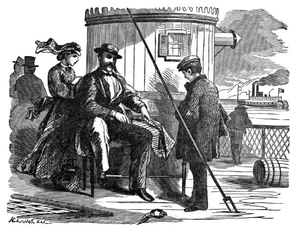 Our conversation was interrupted by the stopping of the steamer at a wood-yard; for I never lost an opportunity, on those occasions, to take a walk on shore. I was nervously anxious to see everything there was to be seen. All was new and strange; and every day, as the settlements on the banks of the great river increased in number and extent, afforded me a new sensation. As I had been brought up far away from the haunts of civilization, even a house was a curiosity to me; and I gazed with [14]astonishment at the busy scenes which were presented to me in some of the larger towns. At St. Joseph we had taken on board quite a number of passengers, and the scene in the cabin had become much livelier than before.