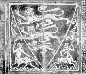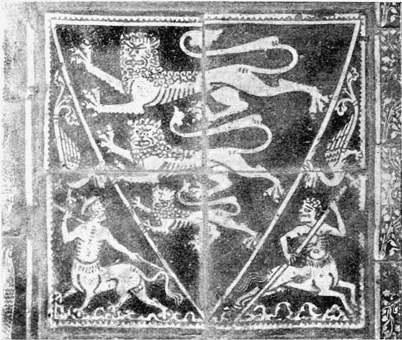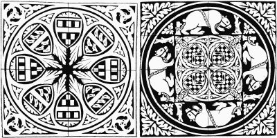 Tiles c. 1255 from the chapter-house and shield c. 1259 from the quire aisle of Westminster abbey