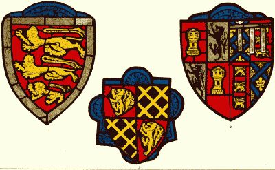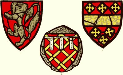 Shields with lions from (1) Felbrigge, Norfolk, c. 1380, and (2) from Spilsby, Lincs, 1391