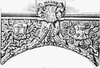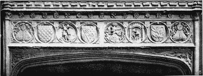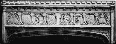Chimney-piece in the Bishop's Palace at Exeter, with arms and badges of bishop Peter Courtenay, 1478-87