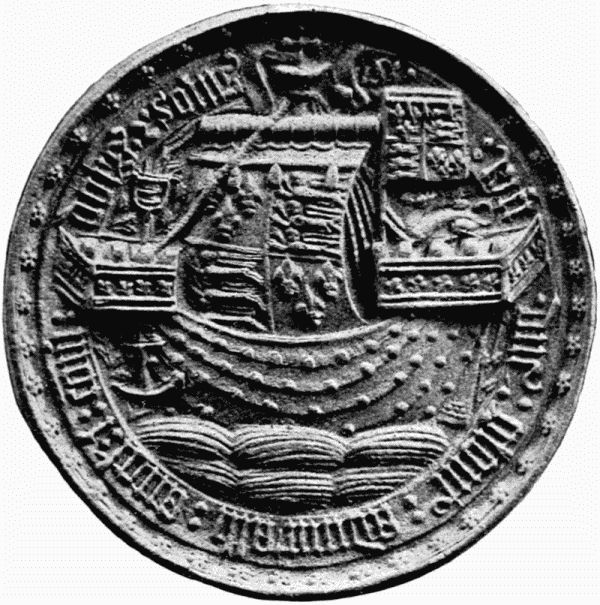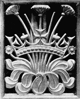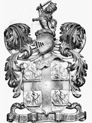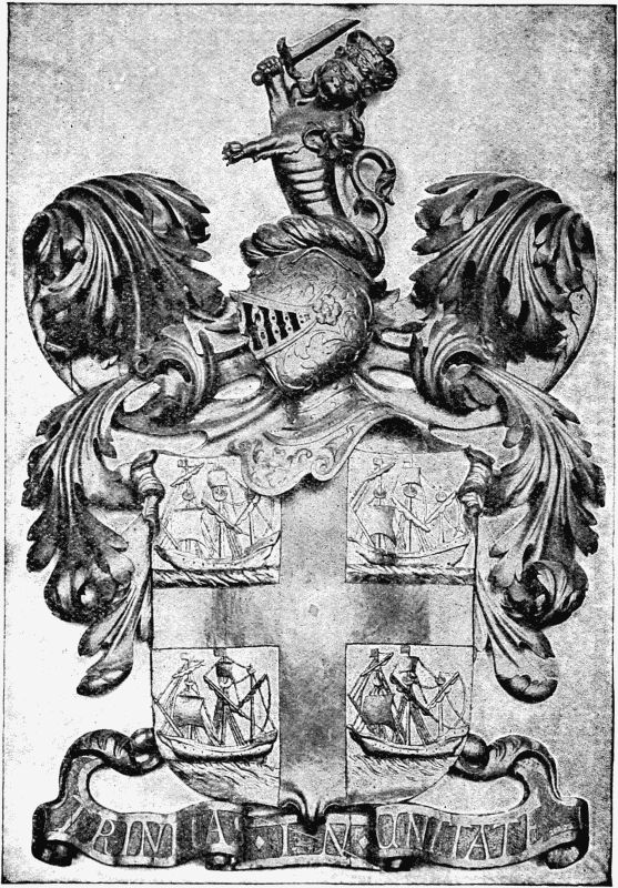 Arms, etc. of the Trinity House, London. From a wood-carving c. 1670 in the Victoria and Albert Museum