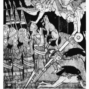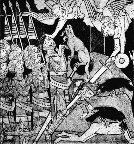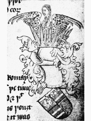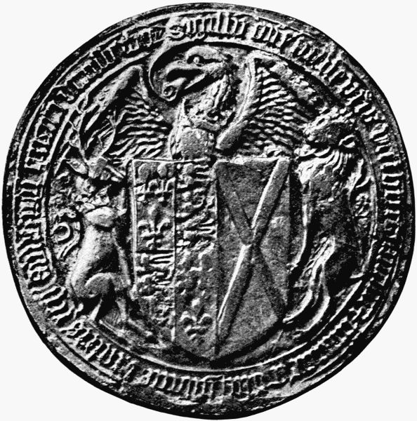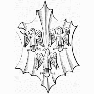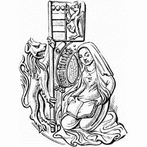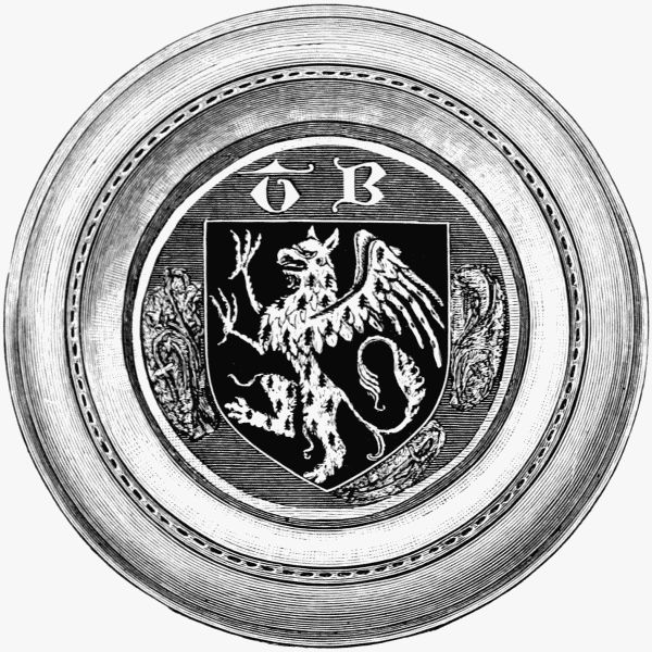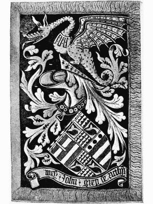 Print from a mazer at All Souls college, Oxford, c. 1450, and shield from a brass at Stanford Dingley, Berks, 1444