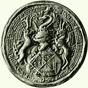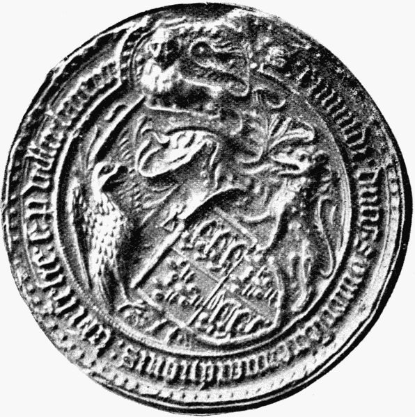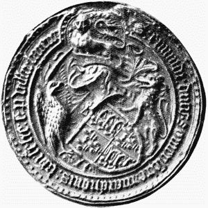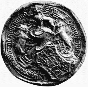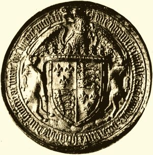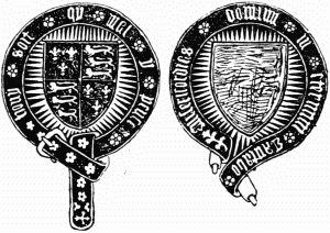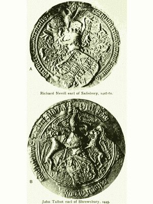 Seal of Richard Beauchamp earl of Warwick, in 1403, and early fifteenth-century heraldic tiles from Tewkesbury abbey church