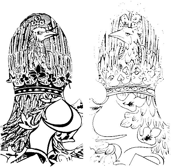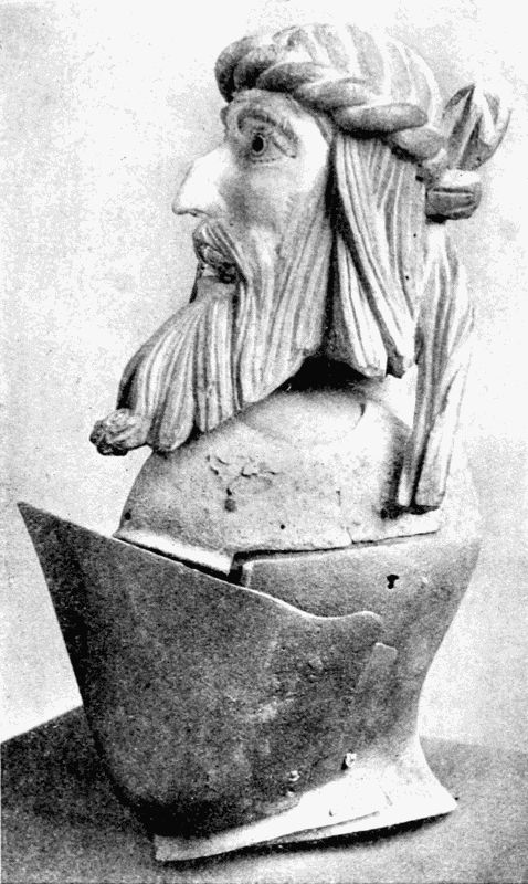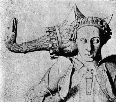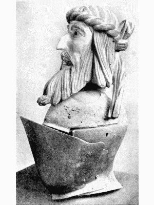 II. That he could omit the crest if he wished, but if he elected to use it, the crest ought certainly to be set upon a helm, which should face the same way as the crest; the crested helm might also be flourished about with such mantling as the sculptor thought proper.