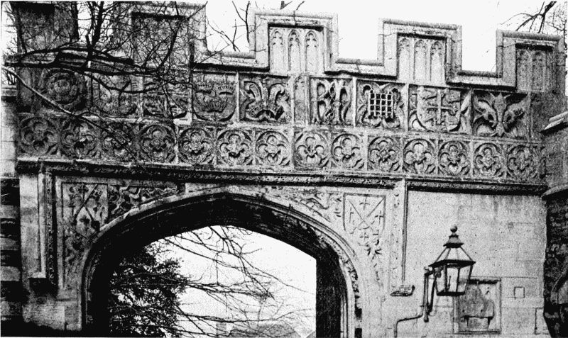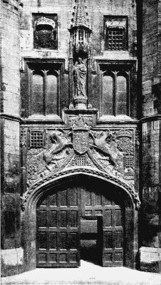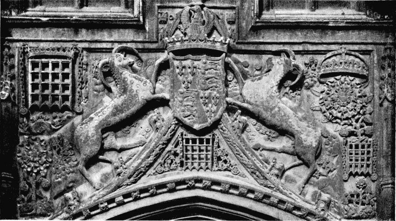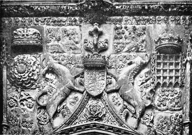 Gateway to the Deanery at Peterborough with arms and badges of King Henry VII and others, built by Robert Kirkton, abbot 1497-1526