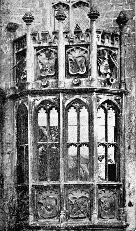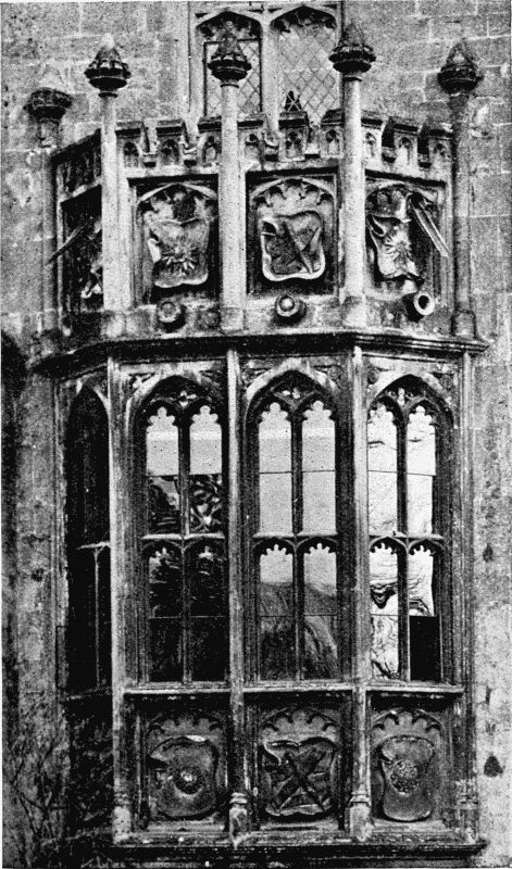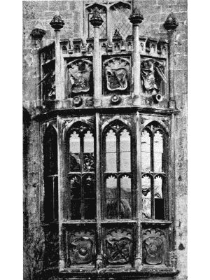 Oriel window in the Deanery at Wells, with badges of King Edward IV and rebuses of Dean Gunthorpe, c. 1475-80