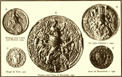 The following series of illustrations is an attempt to gather up into chronological order such of the more typical examples in this book as serve to show the development and various applications of heraldic art from the thirteenth to the eighteenth century. The series could, of course, have been extended indefinitely, but the present collection is probably sufficient for its purpose.