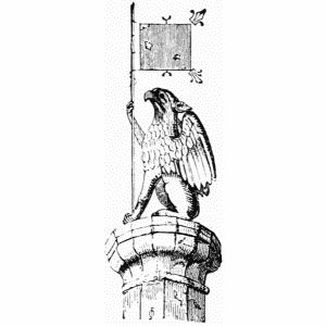 III. That in the particular drawing none of the trophies was heraldic. The sculptor accordingly could omit the whole, if he were so minded, or could dispose about the arms and crested helm any such other trophies of like character as would in his judgment look well or be appropriate.