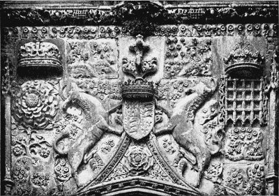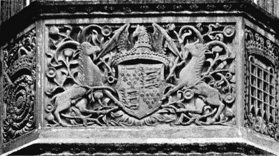 Armorial panel with the arms, etc. of the lady Margaret Beaufort, on the gatehouse of St. John's college in Cambridge