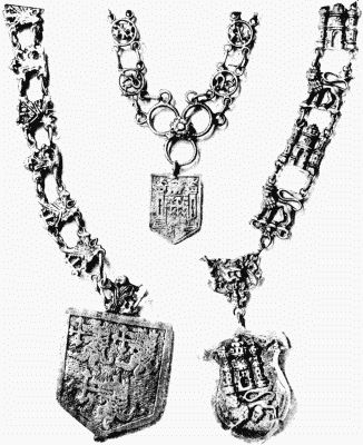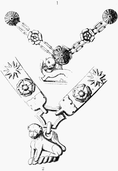 | Crowns and Coronets; Introduction of Coronets; Coronets of Princes, Dukes, and Earls; Bequests of Coronets; Illustrations of Coronets and Crowns; Collars and Chains; Collars of Orders; Lancastrian Collars of SS; Yorkist Collars of Suns and Roses;[Pg 18] Tudor Collars of SS; Other Livery Collars; Waits' Collars; Collars and Chains of Mayors, Mayoresses, and Sheriffs; The Revival of Collars; Inordinate Length of modern Collars. | ||