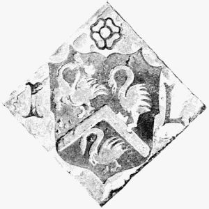 Paving tile, c. 1535, from Marten church, Wilts; and shield of St. George in the Garter from the brass of Thomas earl of Wiltshire and Ormond, 1533, at Hever in Kent