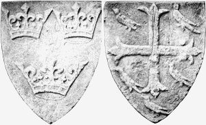 Arms of St. Edmund the King and St. Edward the Confessor, from the tomb of Edmund duke of York, ob. 1402, at King's Langley
