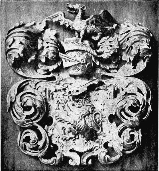 Fig. 198. Limewood carving with the arms and crest of the Trevor family, c. 1700, in the Victoria and Albert Museum.