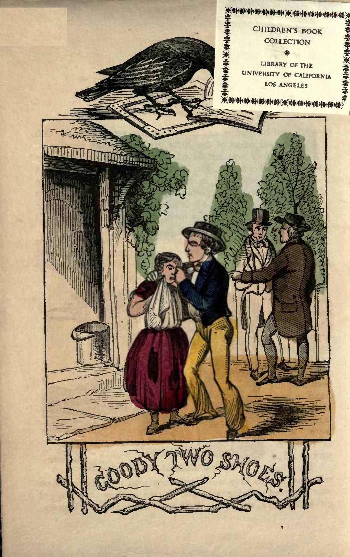 When Margery found that Tommy did not come back, she cried all day until she went to bed, and next morning she went round every one in the village, weeping and lamenting that her brother Tommy was gone. Fortunately, while she was in this distress, the shoemaker came with a pair of new shoes, which the gentleman had ordered for her, and it being so long since little Margery wore a pair of shoes, her attention was so engaged as to give a new turn to her thoughts. Nothing but the pleasure of examining her two shoes could have put a stop to the violence of her grief. She immediately put on the shoes, and then went to let Mrs. Smith see them. It was with delight that little Margery exhibited them to her benefactress, saying, "Two shoes, ma'am! see, two shoes!" She then went through the whole village to show her new shoes, addressing them in the same way, until she got the name of "Little Two Shoes," but, being a very good child, they usually called her "Little Goody Two Shoes," and she never entirely lost that name.