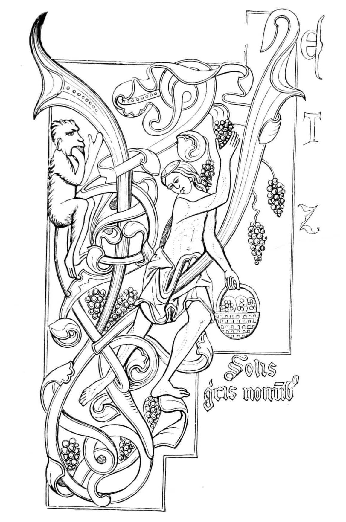 The Irish Church; Celtic goldsmiths; technical processes of the metal-workers copied by illuminators of manuscripts; the Book of Kells, its perfect workmanship and microscopic illuminations; copies of metal spiral patterns; the "trumpet pattern;" Moslem influence; absence of gold in the Irish manuscripts; the Book of Durrow; the monks of Iona; the Celtic missionaries to Northumbria; the Gospels of St Cuthbert; the Viking pirates; the adventures of St Cuthbert's Gospels; the Anglo-Celtic school; improved drawing and use of gold; Italian influence; the early Gospels in the Corpus library; the Gospels of MacDurnan; the Book of Deer; the Gospels of St Chad; the Celtic school on the Continent; the Psalter of St Augustine; Scandinavian art; the golden Gospels of Stockholm and its adventures; the struggle between the Celtic and the Roman Church; the Synod of Whitby; the Roman victory, and the growth of Italian influence; the school of Baeda at Durham.