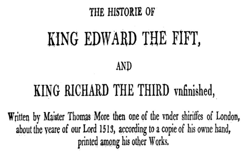 Written by Maister Thomas More then one of the vnder shiriffes of London, about the yeare of our Lord 1513, according to a copie of his owne hand, printed among his other Works.