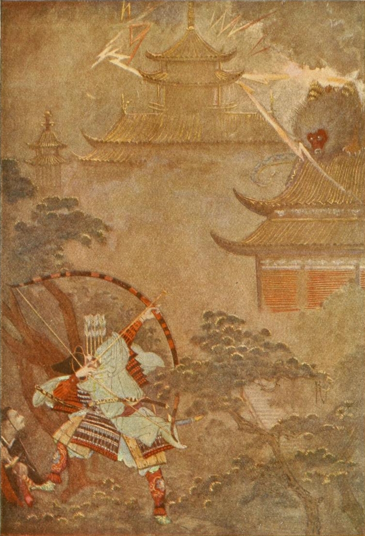 Japan is a mountainous country, and in such countries we expect to find a race of hardy, brave men, and certainly the Land of the Rising Sun has given us many a warrior worthy to rank with the Knights of King Arthur. More than one legend deals with the destruction of devils and goblins, and of the rescue of[Pg xviii] maidens who had the misfortune to be their captives. One hero slays a great monster that crouched upon the roof of the Emperor's palace, another despatches the Goblin of Oyeyama, another thrusts his sword through a gigantic spider, and another slays a serpent. All the Japanese heroes, whatever enterprise they may be engaged in, reveal the spirit of high adventure, and that loyalty of purpose, that cool disregard for danger and death which are still characteristic of the Japanese people to-day.