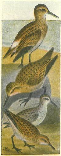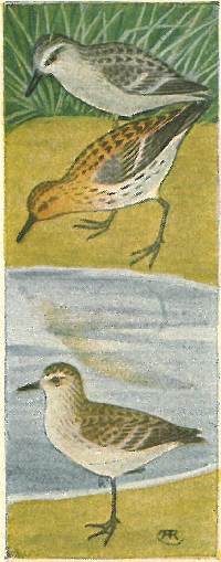 Range.—Alaska and Bering Sea in summer, where they are fairly common on the islands and coast. They nest on the ground, under or beside stones and in bunches of grass; it is made of roots and grasses, lined with moss and animal fur. They lay from four to six white eggs, thickly covered with spots of brown (.75 × .55).