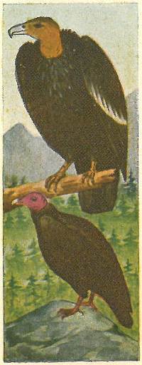 This is the largest of the family, they are odd looking birds, with short legs, stout bodies and very large, thin bills, highly colored with red and yellow, the feet are red and the eyes are white. They stand erect upon their feet and walk with ease.