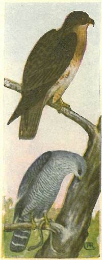 One of the largest of the family in the United States, the breast being barred with wavy lines of gray above the paler gray, with the wings and tail having much white, showing especially in flight. They are bold birds; carnivorous in their habits, living upon other small birds, insects and small rodents. In winter they have been known frequently to live about cities, catching the English Sparrows in the parks and city streets. They tear their food to pieces with their bill, which is shaped similar to that of a hawk’s, while their feet are small and weak, not at all resembling the hawk’s feet. Their nests are placed in thickets or thorny bushes, and are made of shreds of vines, grasses and plant down. Four to six grayish white eggs are laid, these being spotted and blotched with shades of brown (1.05 × .75).