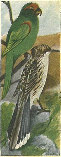 Their nest is usually placed in a cavity of some tree at quite an elevation from the ground, being lined with strips of bark and feathers. They lay from four to six white eggs, thickly spotted with shades of brown (.60 × .50).