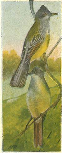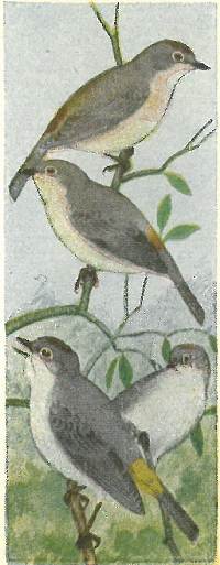 Range.—Western United States, breeding in northern Colorado and California. These birds in their actions somewhat resemble the Redstart, with their long tail, and quick flights into the air for insects and back again to the same twig, possibly near where their nest is placed. They build one of the prettiest of nests, very deep and cup-shaped, and on the top of some moss-covered limb at twenty to forty feet from the ground. Making the nest from plant down and moss, completely covered with lichens, so that it resembles a large knot on the limb, much like the nest of the Ruby-throated Hummingbird. Four or five dull white eggs, spotted with brown (.58 × .45).